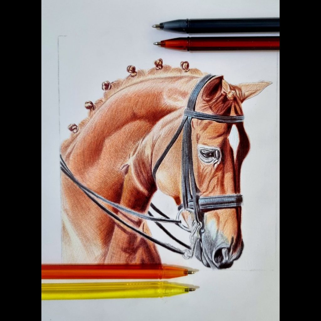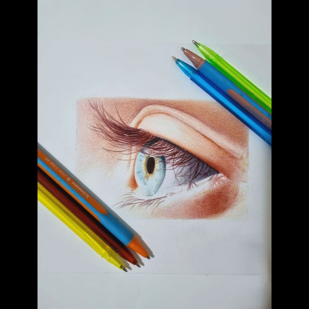 - جلسه ۱ و ۲: تمرین اولیه هاشور زنی، تنالیته با خودکار تک رنگ